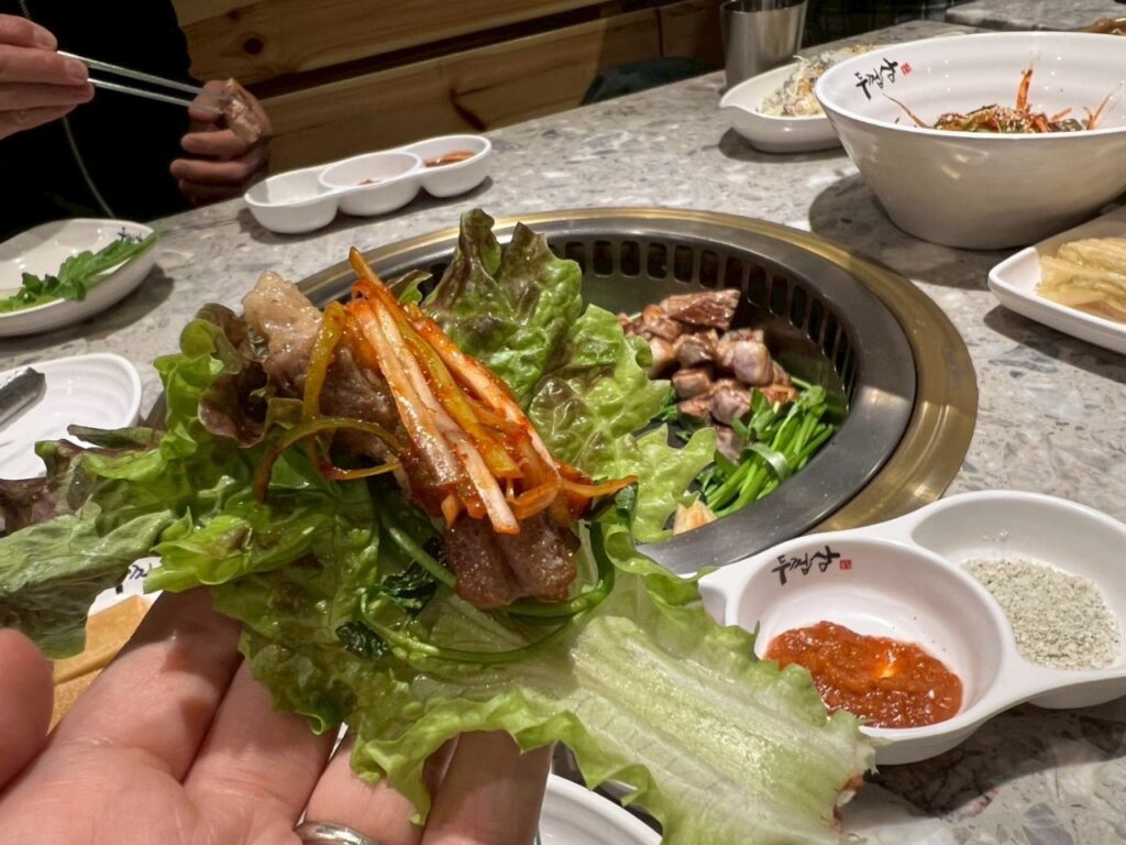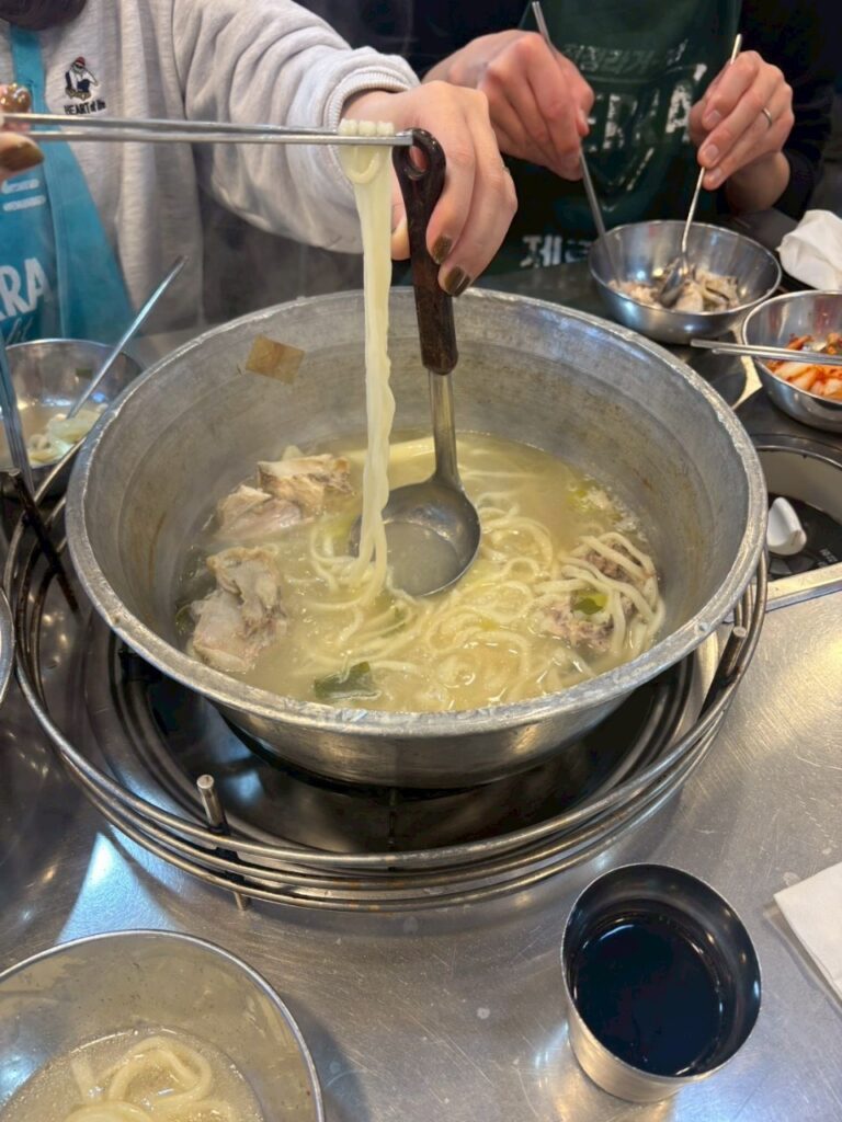 現地では、搾りたてのえごま油をその場で瓶詰めしてくれるえごま油のお店や、市場での食べ歩き、人気のタッカンマリ、トッポギ、ユッケ、サンナクチ、クァベギ、話題の塩パン、ドバイチョコ餅クッキーのドゥジョンク、王道のサムギョプサルなど、韓国グルメを満喫しました。