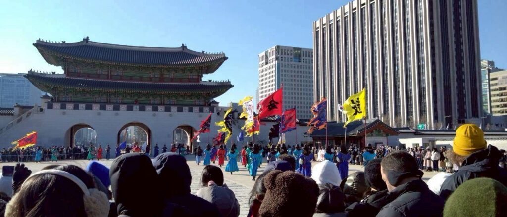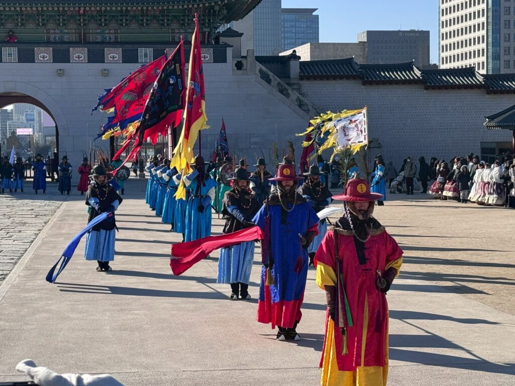 景福宮では歴史的な建造物を観光し、交代式(朝鮮時代の王宮警備を再現した伝統行事)の様子も観覧しました。