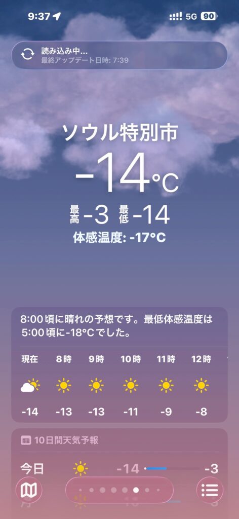 この時期のソウルは気温がマイナス14℃にもなり、日本では中々できない極寒の体験をすることができました。社員の皆さんも防寒対策をしっかりして凍える寒さに備えました。
